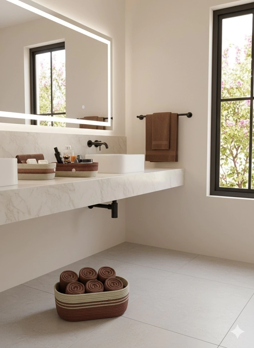 Descubrí el Cesto Venere, el organizador oval que combina funcionalidad y diseño para transformar tus espacios. Perfecto para mantener todo en orden, este cesto es ideal tanto para el baño como para la cocina, aportando un toque de frescura y calidez gracias a su combinación única de colores en tonos marrones y verde o aqua.