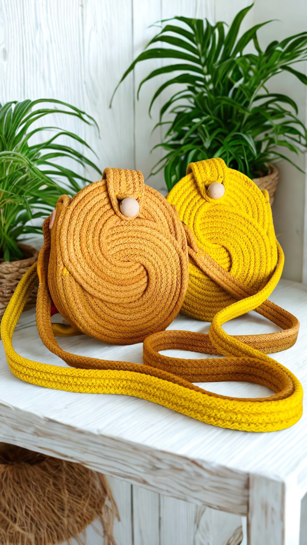 Varese está confeccionada en cordón de algódón de 8 mm teñida con tintes naturales de plantas, especias y residuos vegetales. Es el portable que mayor terminación a mano conlleva.